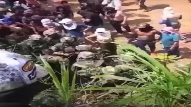 En el lugar la tropa pretendía realizar la destrucción controlada de un laboratorio con aproximadamente cuatro toneladas de clorhidrato de cocaína; pero, durante el procedimiento, dice el Ejército que el personal que desarrolla esta actividad ilícita no abandona el sitio y son rodeados por más de 400 personas, que ocultan sus rostros con capuchas.