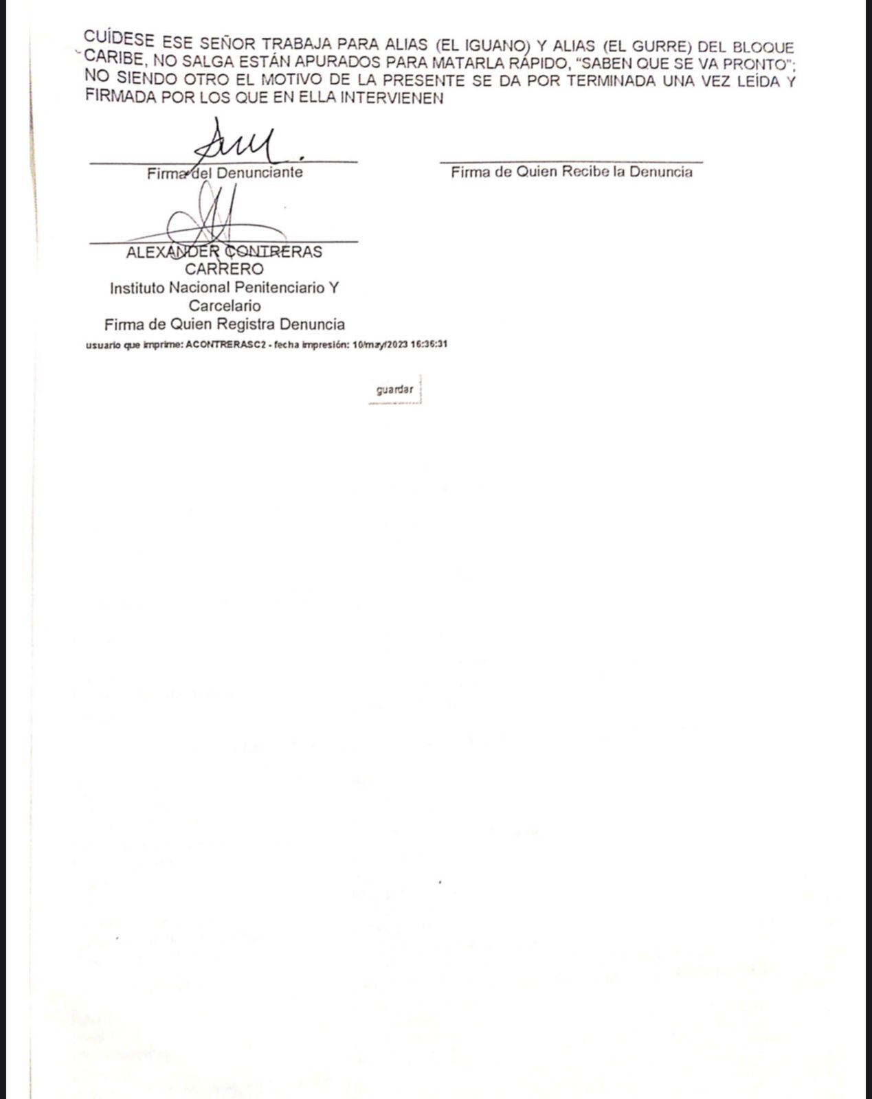 Por lo que su defensa radica la denuncia y le hace un nuevo llamado al Ministro de Justicia, al Inpec y al