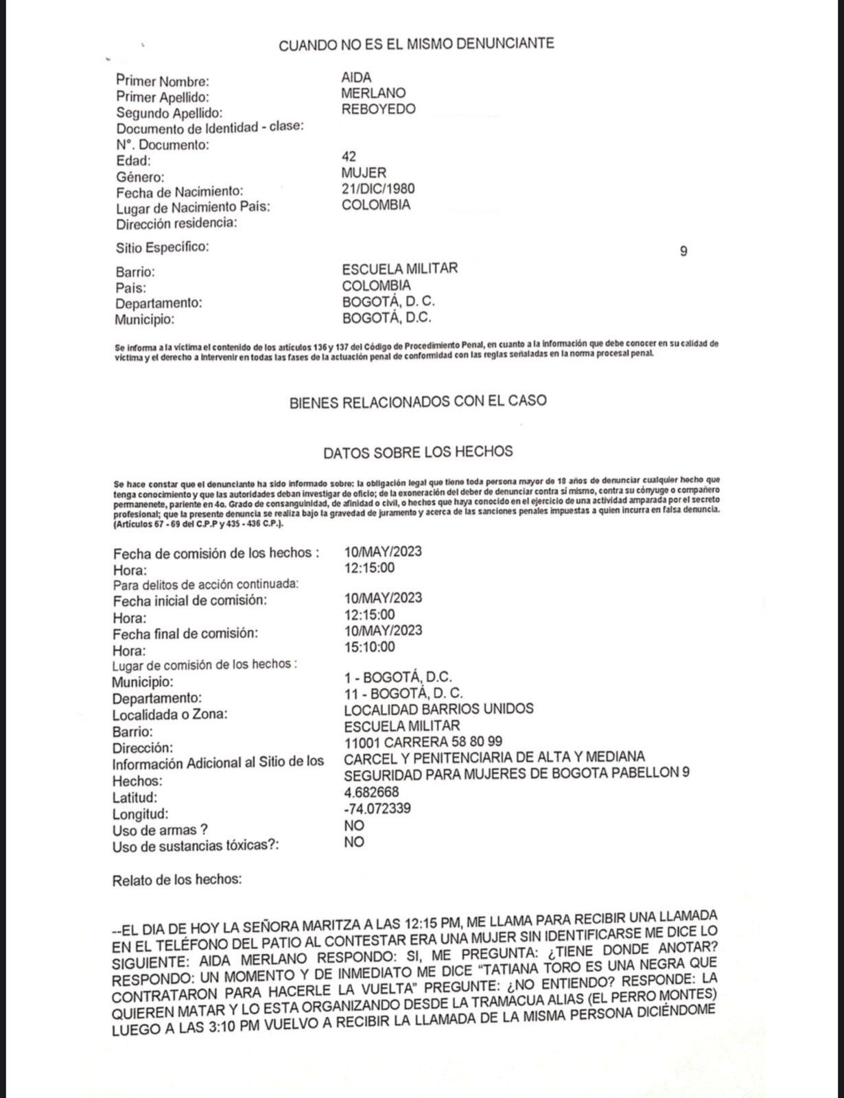 El abogado Miguel Ángel del Río denuncia un plan para asesinar a su defendida la excongresista Aida Merlano, al parecer se trata de una llamada advirtiéndole que otras internas del Buen Pastor atentarían contra su vida.
