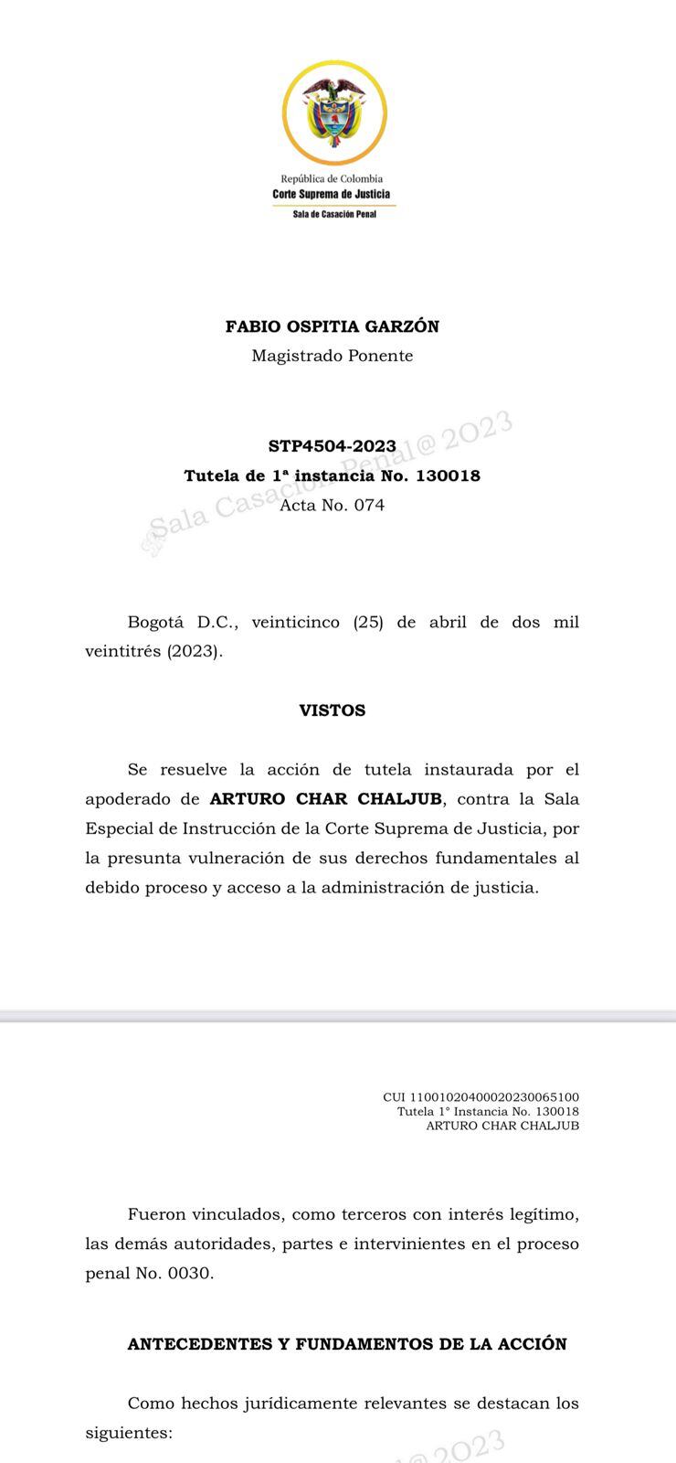 Recordemos que en contra de Char, la Sala Especial de Instrucción de la Corte Suprema de Justicia adelanta un proceso penal por los delitos de corrupción de sufragante y concierto para delinquir agravado, el 24 de noviembre de 2022, la aludida Corporación ordenó abrir investigación formal en contra de Char.