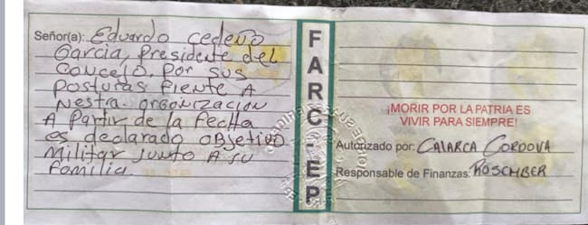 Con estos panfletos disidencias Farc extorsionan a contratistas, ganaderos y políticos