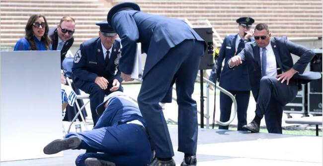 El presidente de Estados Unidos, Joe Biden, de 80 años, se tropezó y cayó al suelo este jueves durante la ceremonia de graduación de los cadetes de la Academia de la Fuerza Aérea en Colorado.