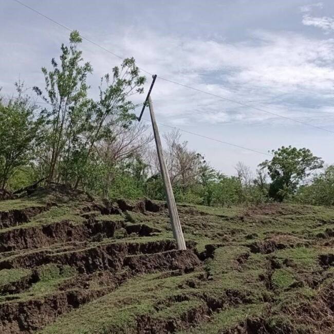 Veredas como Cerro Santa Cruz y Primavera, continúan sin servicio de energía eléctrica tras la caída de postes y redes. Dos torres de telefonía celular amenazan con colapsar ante la debilidad del suelo.