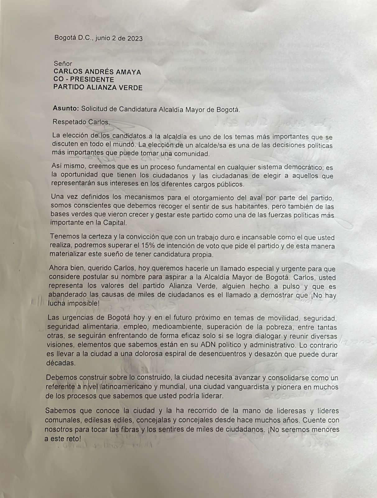 La carta de respaldo enviada por los ediles y concejales demuestra el interés de un grupo importante dentro de la política local por contar con Carlos Amaya en la contienda electoral para la Alcaldía de Bogotá. Su trayectoria como exgobernador de Boyacá y su liderazgo en la bancada verde han despertado el interés y la confianza de estos representantes políticos.
