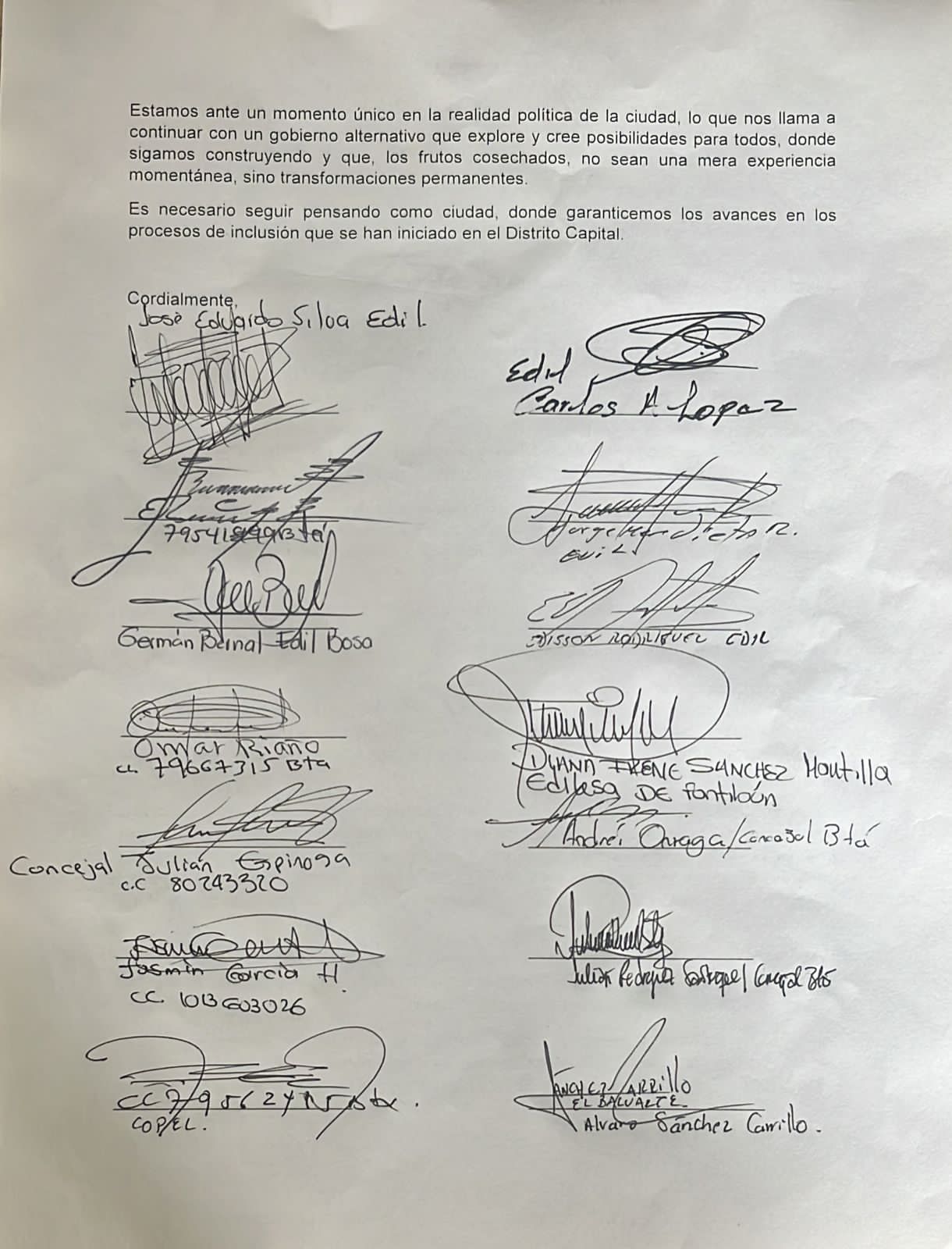 A pesar de que varios ya lo habían descartado como contendiente, más de 30 ediles y concejales de Bogotá han enviado una carta respaldando su postulación.