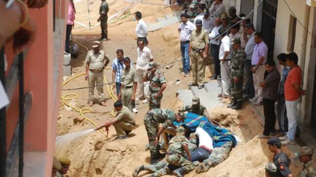 Equipos de la Fuerza Estatal de Respuesta a Desastres (SDERF) y de la Fuerza Nacional de Respuesta a Desastres (NDRF) participaron desde el principio en las labores de rescate, a las que después se unieron soldados del Ejército y un robot especializado en este tipo de rescates.