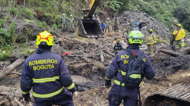 La Policía Nacional solicitó la ayuda de los Bomberos de Bogotá luego de que la comunidad informara sobre la presencia de partes de un vehículo y rastros de aceite en el área afectada por una avalancha causada por las fuertes lluvias en noviembre de 2022.