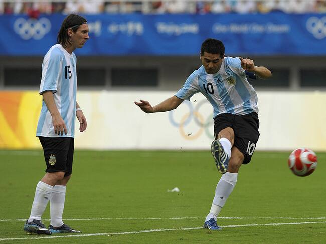 Lionel Messi y Riquelme en 2008. Foto: LIU JIN/AFP via Getty Images. / LIU JIN