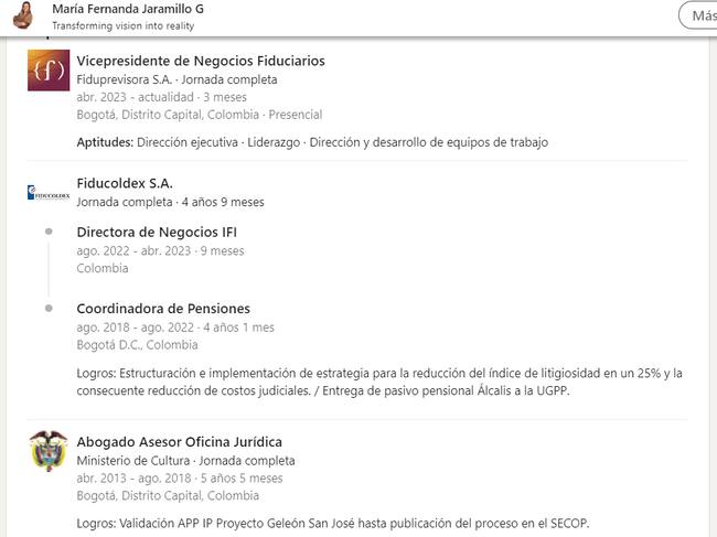 En el caso de las dos vicepresidencias una se nombró a María Fernanda Jaramillo que viene de Fiducoldex de ser directora de negocios fiduciarios. Y agregó que Vanesa Gallego que también tiene amplia experiencia no solo en los temas jurídicos sino fiduciarios.