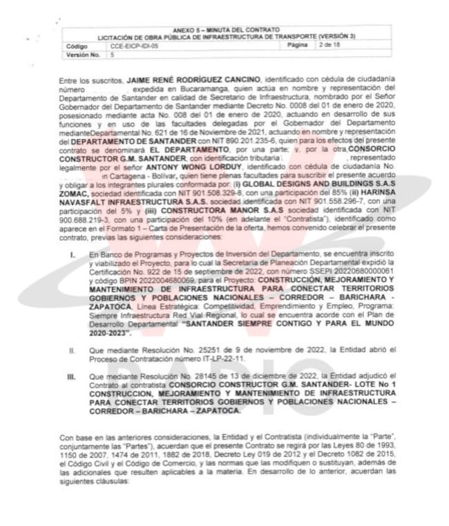 Julián Silva Cala, ex secretario de planeación de Bucaramanga, hace la denuncia de que no es solamente este contrato el que la Gobernación de Santander adjudicó a este grupo de empresa sino que hay otro que corresponde al mejoramiento de la vía Barichara - Galán - Zapatoca.