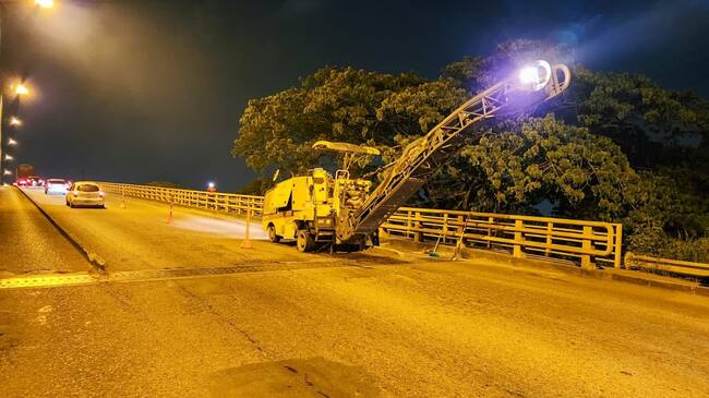 “Con la intervención de 1920 m2 iniciaron los trabajos de mantenimiento y recuperación de la capa asfáltica del puente de la 41, Segundo Centenario. Desde las 8:00 de la noche hasta las 4:00 de la mañana se realizaron las labores de fresado del pavimento asfáltico y el retiro del material para, posteriormente, colocar una nueva capa”, informó la administración municipal.