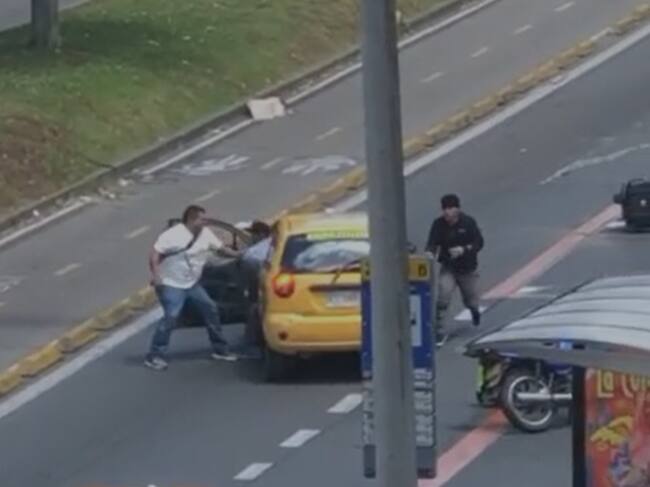 Las imágenes fueron tomadas de los videos que han circulado en redes sociales. Estas enfocan los rostros de los dos asaltantes que agredieron a un domiciliario para intentar robarle su moto pero, al no poder huir en esta, hicieron detener a un taxi y se lo llevaron.