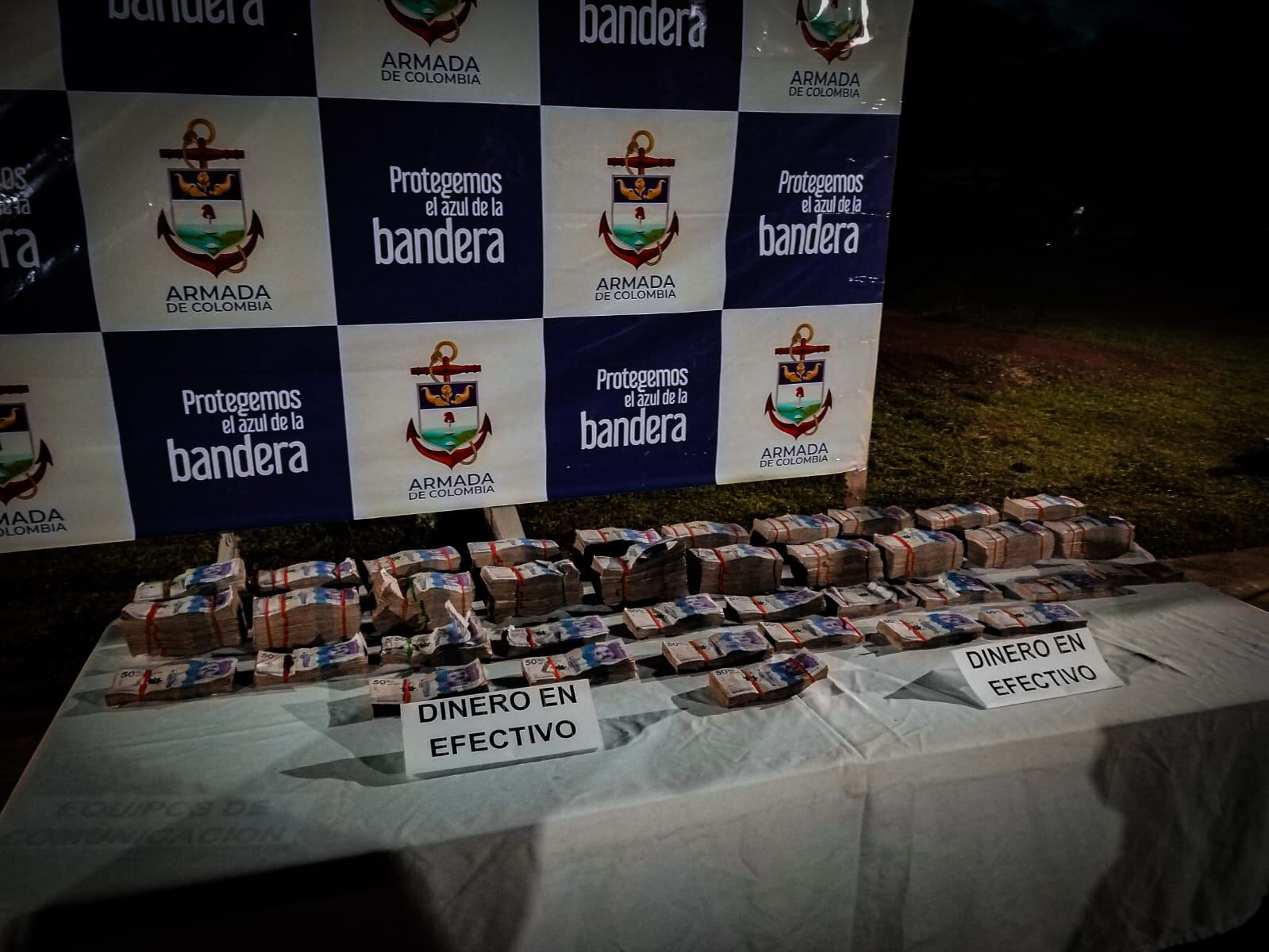 Cerca de media tonelada de cocaína, 585 millones de pesos en efectivo y equipos de comunicación como radios, antenas y celulares satelitales, fueron incautados por la Armada con apoyo de la Fuerza Aérea y el Ejército Nacional en el departamento de Arauca, a aproximadamente un kilómetro de la frontera con Venezuela. Durante la operación militar un colombiano y un venezolano fueron capturados.