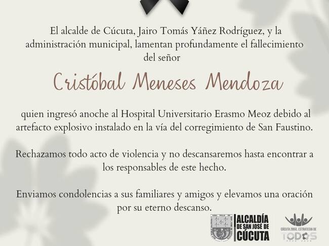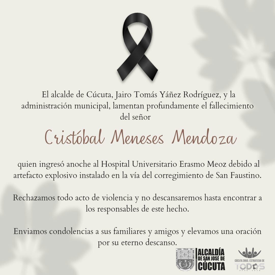 Cristóbal Meneses Mendoza falleció por la gravedad de sus heridas en el hospital de Cúcuta.