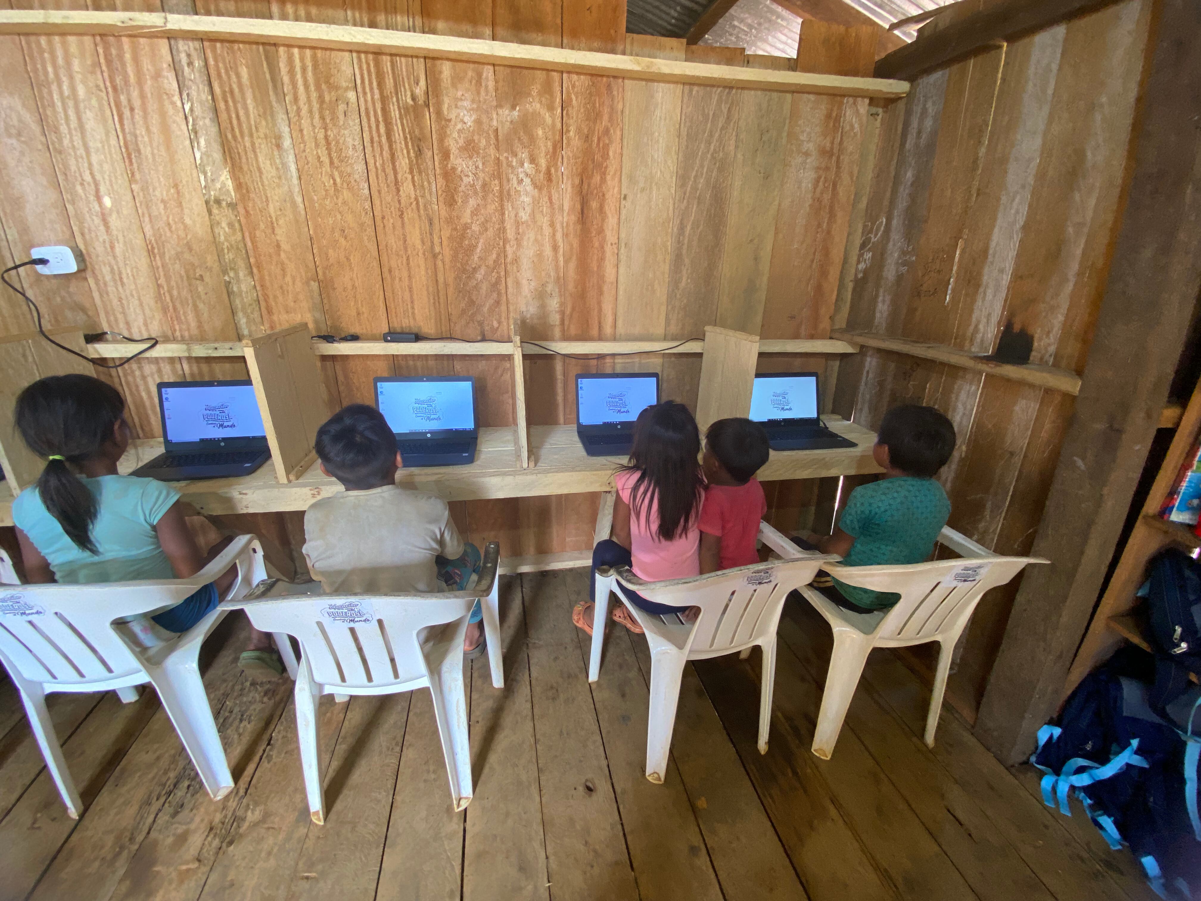 Sala de tecnología donada por Expedición Minsait a la comunidad Cacua de Wacará. Foto: cortesía.