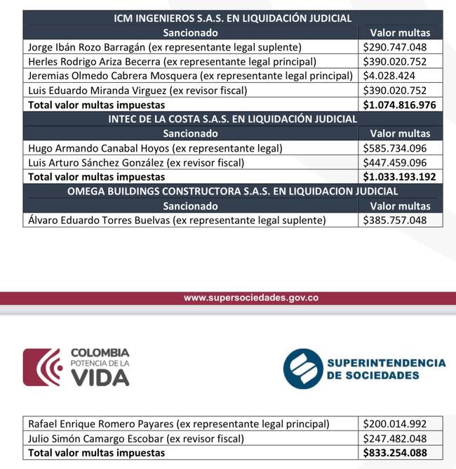La Superintendencia de Sociedades impuso sanciones por $2.941.264.256 de pesos a estos implicados.