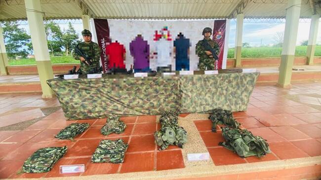 Estos sujetos hicieron, además, la entrega de tres fusiles M4, un fusil AK47, una granada, ocho proveedores metálicos, munición de diferente calibre y abundante material de intendencia.