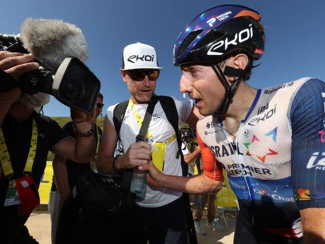 El canadiense Michael Woods tras ganar la novena etapa del Tour de Francia 2023. Foto: MICHAEL STEELE / POOL / AFP / MICHAEL STEELE