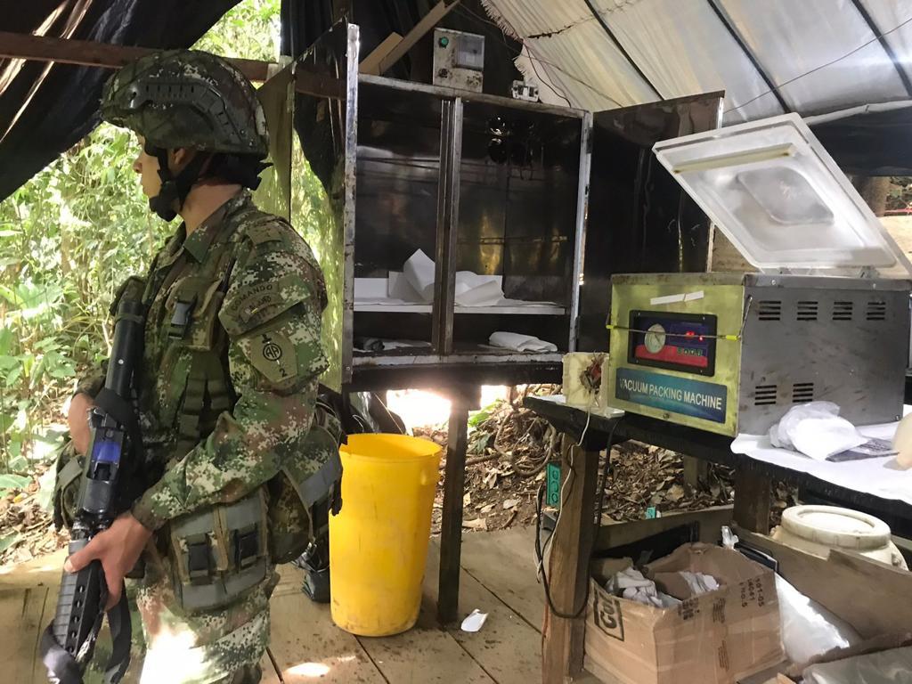 En operaciones adelantadas por el Ejército y la Fuerza Aérea se ubicaron y destruyeron dos laboratorios y un depósito ilegal que debilita las economías ilícitas de los grupos armados organizados, la delincuencia organizada transnacional y los grupos delincuenciales organizados, señalaron las autoridades.