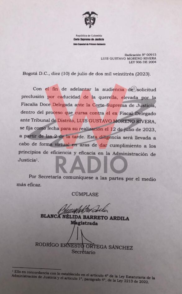 Luis Gustavo Moreno y su defensor, solicitaron que se aceptara la petición de la fiscalía, en medio de una audiencia que adelantó la Corte Suprema de Justicia que admitió la preclusión y se tomará 8 días para tomar la decisión.