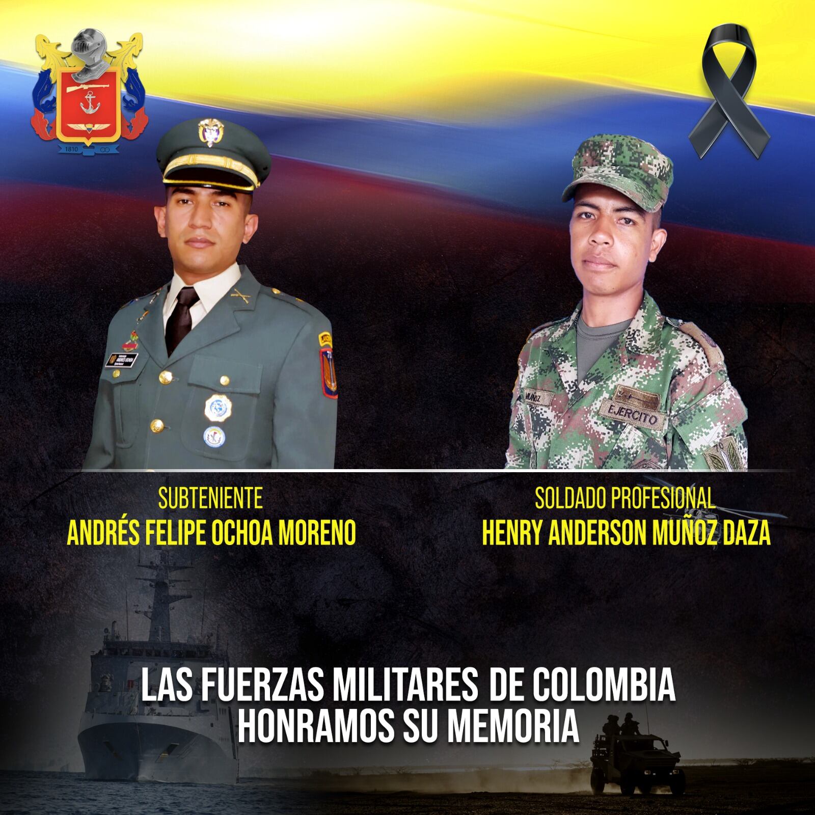 “Este Comando envía un mensaje de condolencias a los familiares, compañeros y amigos de nuestro oficial y soldado fallecidos. A su vez, se activó el protocolo de acompañamiento interdisciplinario establecido para la atención integral de sus familias. La Fuerza de Tarea Conjunta Omega continúa en el lugar desarrollando acciones para proteger la vida de los habitantes en esta región del suroriente colombiano y aportar a la seguridad de la población civil y sus recursos”.