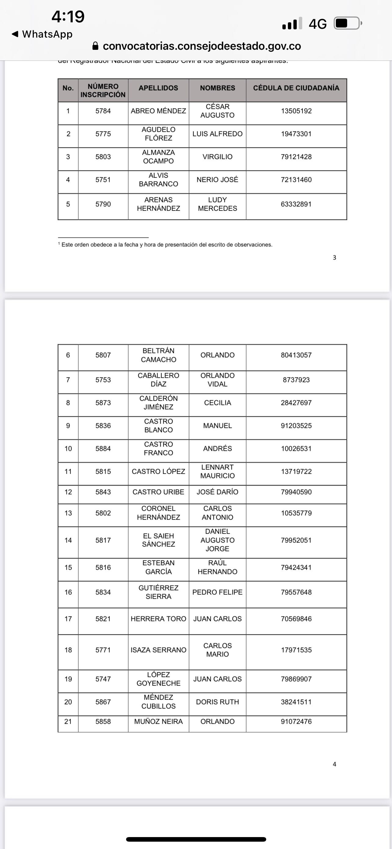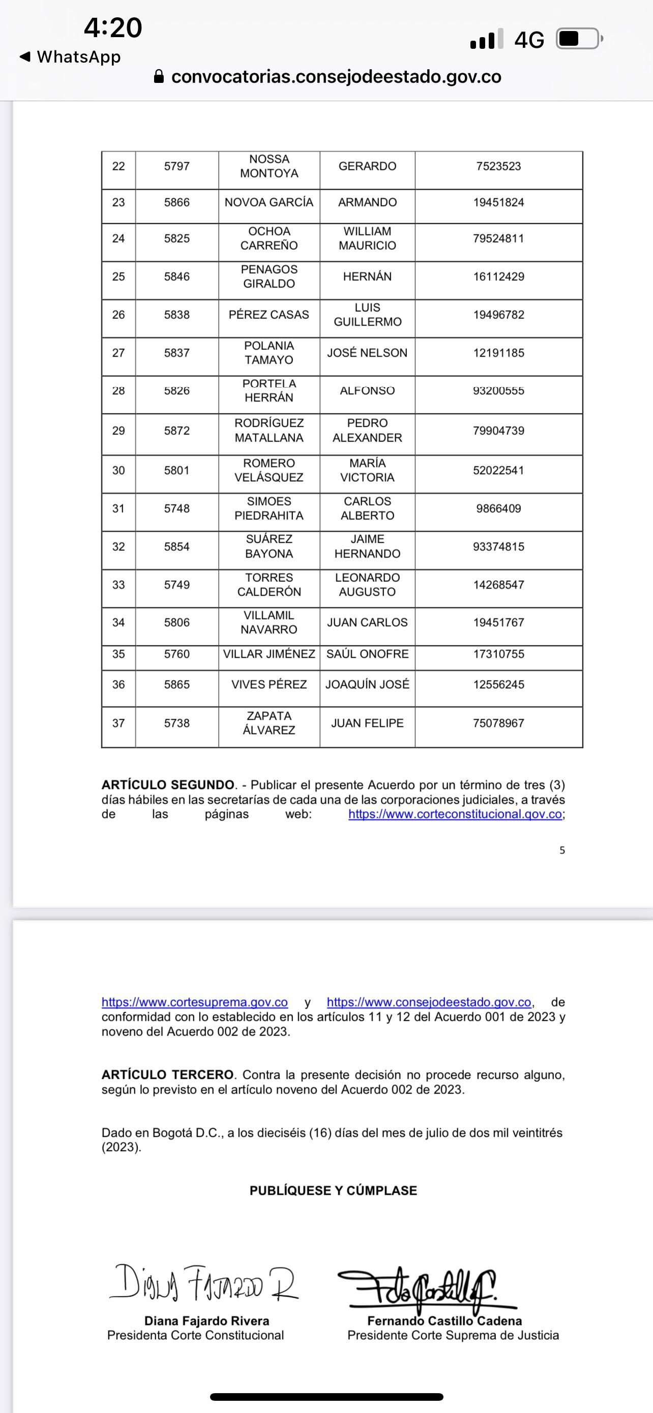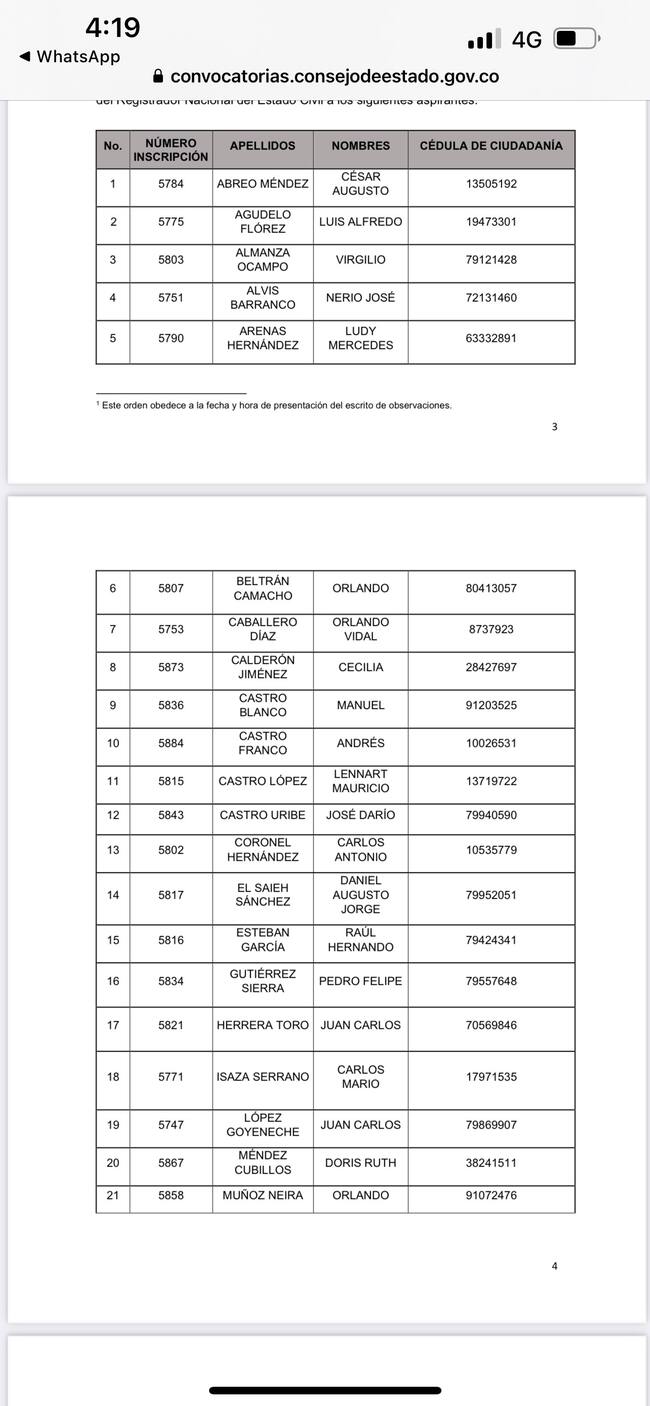 Ya se conoce la lista de admitidos a próximo registrador nacional del Estado, la cual surge luego de un concurso abierto de méritos en el que los tres presidentes de las altas cortes; Corte Suprema, Corte Constitucional y Consejo de Estado seleccionarán quién será el reemplazo de Alexander Vega.
