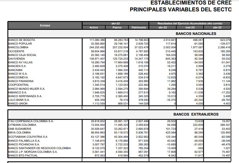 La Superintendencia Financiera de Colombia reportó en un informe los principales estados financieros de los bancos del país. En este informe se ven cuáles fueron las ganancias de algunos entidades financieras nacionales y extranjeras.