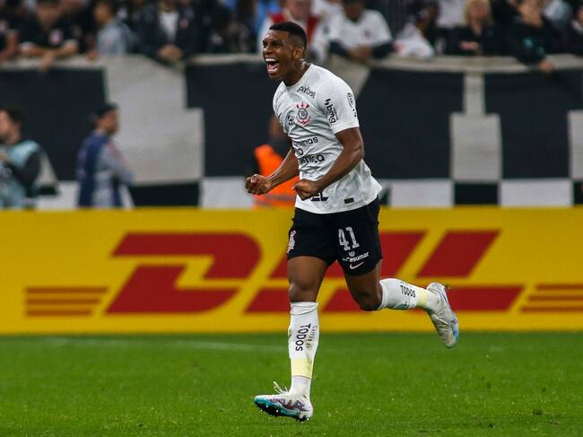 Felipe Augusto de Corinthians celebra su gol frente a Universitario por Copa Sudamericana. 18 de julio de 2023. Foto: Miguel Schincariol/Getty Images. / Miguel Schincariol