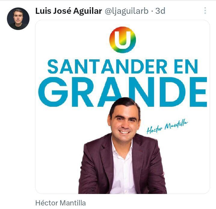 Aunque el exalcalde de Floridablanca, Héctor Mantilla, no ha inscrito su candidatura a la Gobernación de Santander ya tiene el aval del Partido de La U y ahora tiene el apoyo del coronel Hugo Aguilar quien a través de su cuenta de instagram ya comenzó a hacerle campaña.