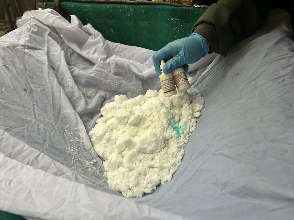En el primer laboratorio había 2 toneladas de cocaína, 356 galones de pasta base de coca en solución, 2.370 galones de insumos líquidos y 900 kilogramos de insumos sólidos, y en el segundo laboratorio, 3.000 kilogramos de clorhidrato de cocaína, 400 kilogramos de insumos sólidos y 2.297 galones de insumos líquidos.
