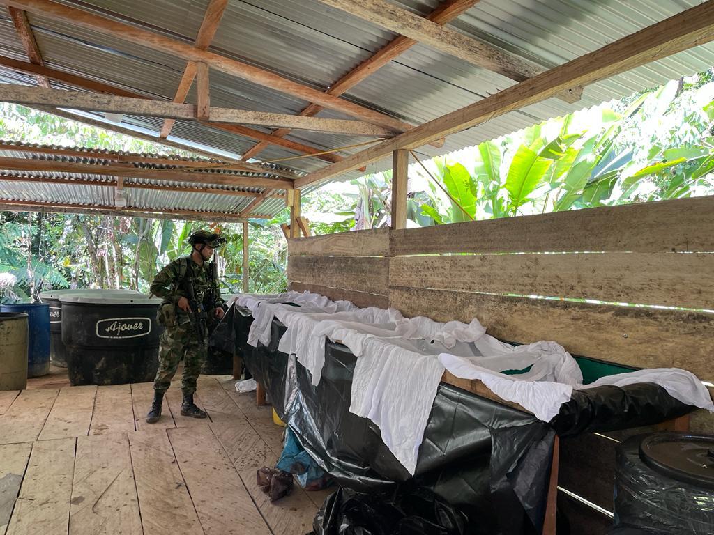 En esos lugares fueron ubicados y destruidos dos laboratorios, al parecer, pertenecientes a las disidencias Farc, estructura Franco Benavides, y al ELN, compañía José Luis.
