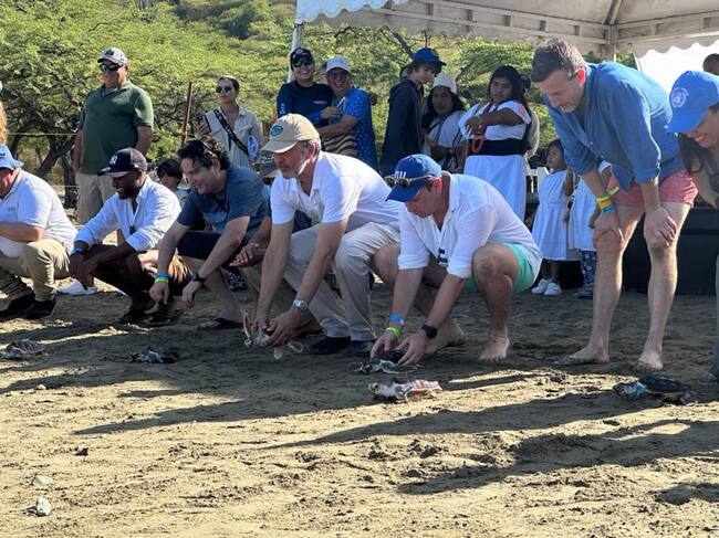 El alto funcionario visitó las Playas de Inca Inca, Distrito de Santa Marta, donde participó en la liberación de 18 tortugas Caguama (Caretta caretta), 2 tortugas verdes (Chelonia mydas) y 3 Tiburones Gatos (Ginglymostoma cirratum) que fueron rescatados y rehabilitados en el Centro de Rescate de Fauna Marina de CORPAMAG y Acuario del Rodadero.
