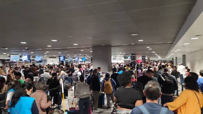 Largas filas en Migración del Aeropuerto El Dorado. Foto: W Radio