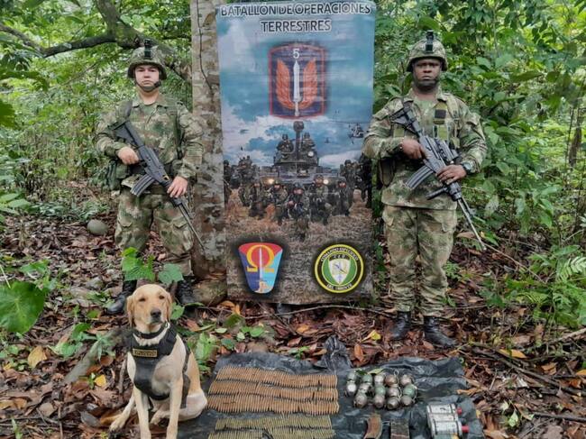 El pasado 26 de julio este perro, en zona rural de ese mismo municipio, había localizado unas granadas y abundante munición munición perteneciente al Estado Mayor Central de las disidencias de la Farc. “Este cruel atentado es una clara violacion a los Derechos Humanos y el Derecho Internacional Humanitario y será denunciado ante las autoridades competentes”.