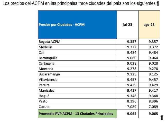 A partir de este sábado 5 de agosto el valor de la gasolina corriente motor tendrá un reajuste en promedio de $600, ubicándose en $13.564 por galón en todo el país, mientras que los precios del diésel se mantendrán estables en $9.065 pesos por galón.