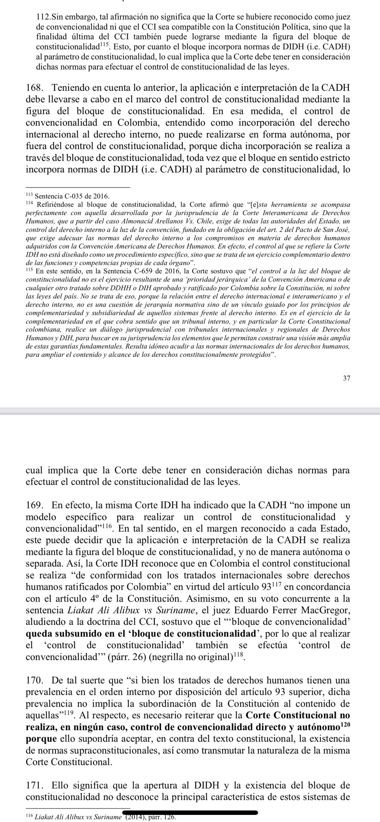 Y recuerda que la misma Corte IDH ha indicado que la Convención Americana de Derechos Humanos “no impone un modelo específico para realizar un control de constitucionalidad y convencionalidad”.