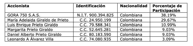 La sociedad está conformada así: