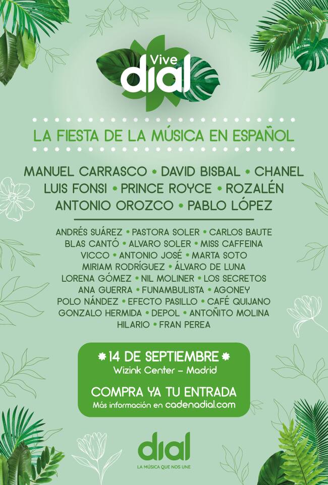 Vive Dial 2023, organizado por la Cadena Dial, es el plan para despedir el verano. La emisora líder de música en español promete que esta fiesta será la celebración de la música, de la vida, del amor y de la amistad. Y no es para menos ya que el abanico de artistas invitados deleitará al público con música, ritmos y géneros para todos los gustos.