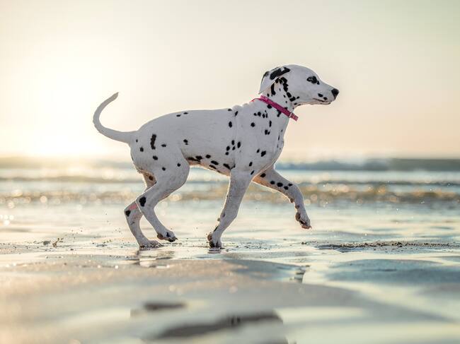 Perro dálmata caminando en la playa (Foto vía Getty Images) / Alexandra Robins