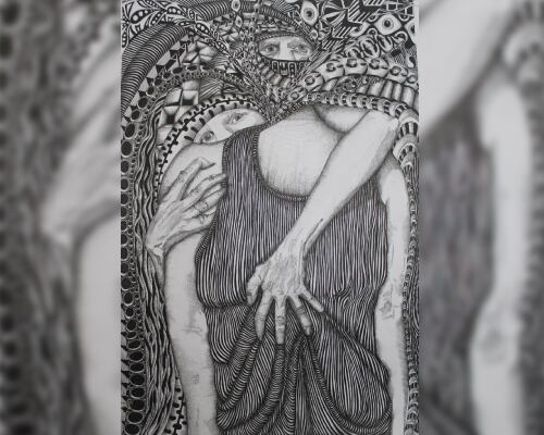 Elvia Patricia Rúa Restrepo “De qué es capaz el cuerpo “ 100 cm x 70 cm Rapidografo sobre papel 2023 $2´000.000 Pesos Legado del Arte 2023 ruacia@gmail.com