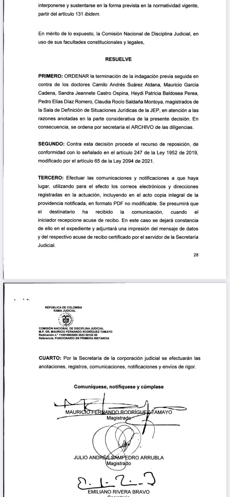 Comisión de Disciplina archiva queja de Ramiro Suárez Corzo contra magistrados de la JEP