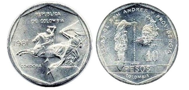 Con imágenes del militar José María Córdoba y las islas de San Andrés y Providencia, esta moneda estuvo en circulación desde 1981 hasta 1989. Su material es de cobre, níquel y zinc, pesa 9,96 gramos y tiene un diámetro de 28 milímetros. Por esta pieza, los coleccionistas pagan entre $6.000 COP hasta $270.000 COP.