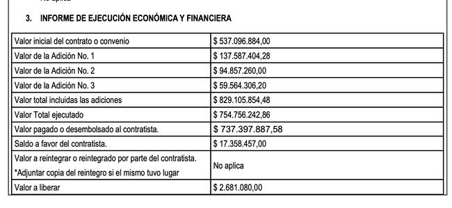 Una vez finalizado el contrato (15 de noviembre del 2022) se procede a realizar otro contrato el 16 de noviembre del 2022 con un vencimiento del 30 de noviembre del 2023 por $ 5.913.072.537. La diferencia entre el primer contrato y el segundo contrato es de $5.083.966.689 de pesos.