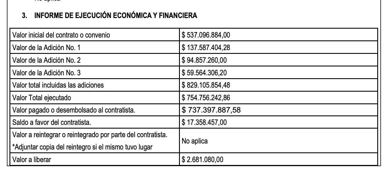 Una vez finalizado el contrato (15 de noviembre del 2022) se procede a realizar otro contrato el 16 de noviembre del 2022 con un vencimiento del 30 de noviembre del 2023 por $ 5.913.072.537. La diferencia entre el primer contrato y el segundo contrato es de $5.083.966.689 de pesos.