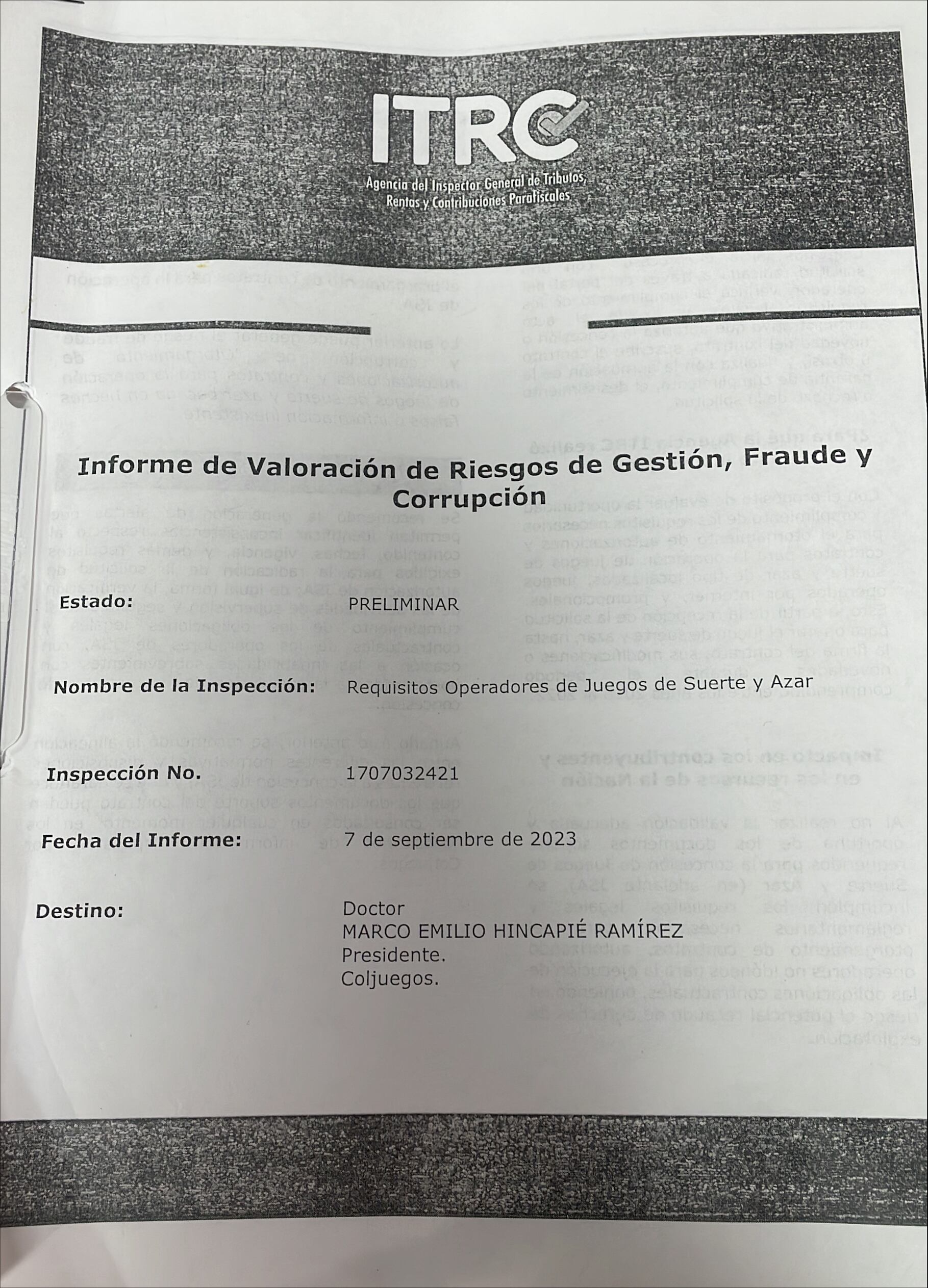 Así las cosas, la ITRC señaló que “lo anterior puede generar el riesgo de fraude y corrupción de ‘otorgamiento de autorizaciones y contratos para la operación de juegos de suerte y azar basada en hechos falsos o información inexistente’”.