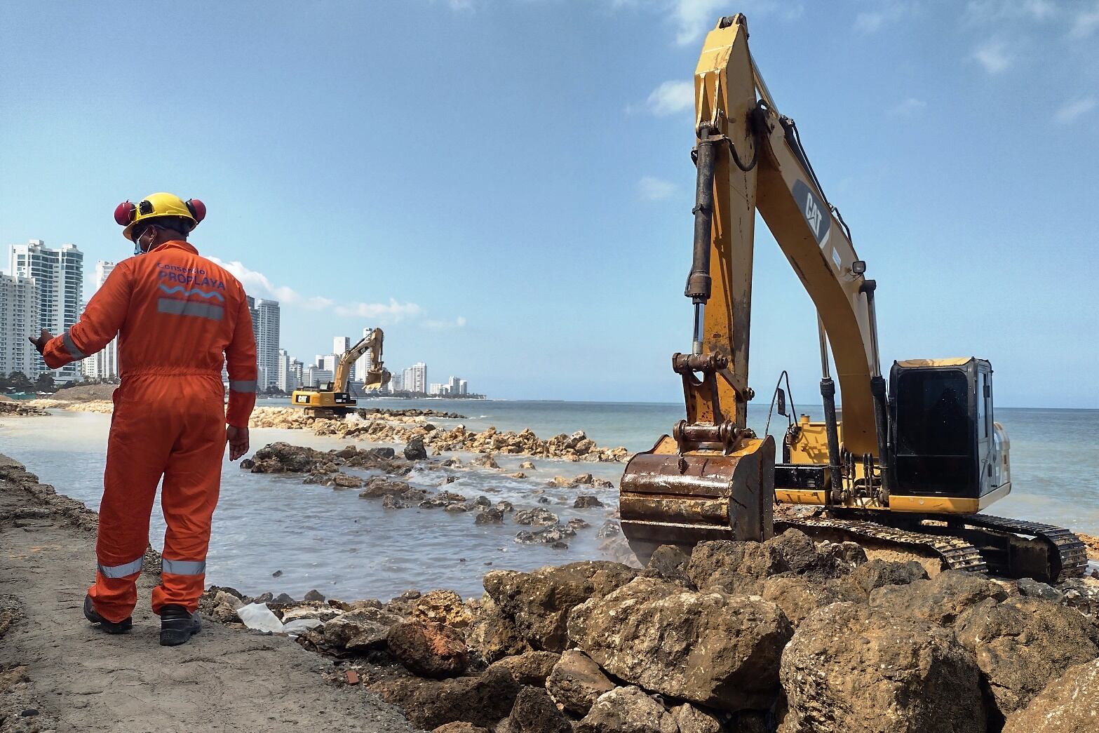 En este momento las obras de Protección Costera se encuentran paralizadas, la orden la habría dado la Unidad Nacional de Gestión del Riesgo, “la última vez que vino el director de la Unidad Nacional de Gestión del Riesgo, Olmedo López, ordenó parar las obras que no estuvieran relacionadas con la playa 4 y 5 básicamente el espolón 1 y el inicio del relleno hidráulico de la playa 3″.
