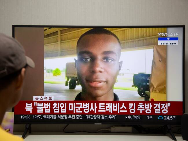 En pantalla de TV aparece el soldado Travis King. Foto: EFE/EPA/JEON HEON-KYUN / JEON HEON-KYUN (EFE)