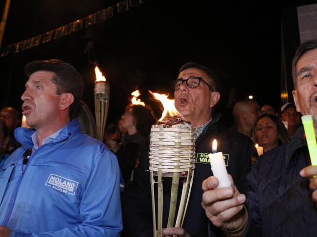 Líderes de la oposición y candidatos a la Alcaldía de Bogotá en las elecciones del 29 de octubre se reunieron este lunes en la capital colombiana para participar en una “antorchatón” en la que, precisamente con antorchas y velas, protestaron contra el Gobierno del presidente Gustavo Petro.