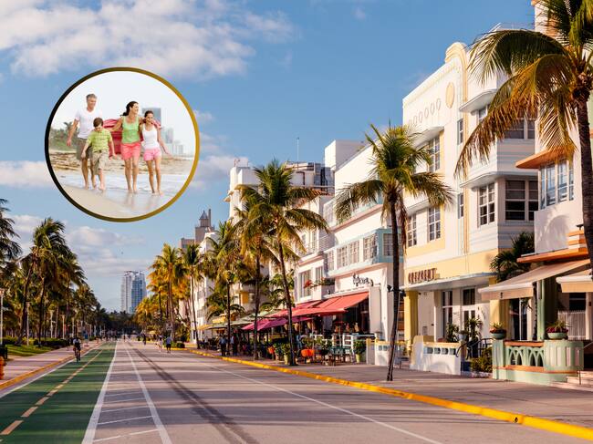 Vista de Miami Beach y de fondo una familia caminando por la playa (Fotos vía Getty Images)