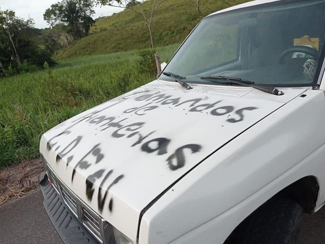 La situación se registró en el sector de San Juan, donde los presuntos integrantes del grupo armado ilegal detuvieron varios vehículos y les hicieron grafitis alusivos a los Comandos de Fronteras que han decretado un paro armado.